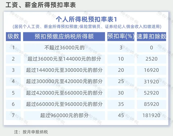 以全年一次性奖金收入除以12个月得到的数额对照月度税率表确定: